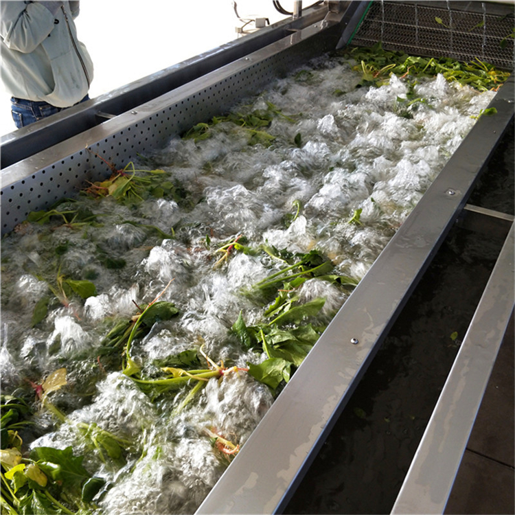 蔬菜清洗機設備中均由SUS304材料制作而成,基本符合出口食品衛生要求。清洗設備中設有氣泡發生裝置,使物料呈翻滾狀態,去除產品表面農殘的功效。漂浮物可以從溢流槽溢出,沉淀物從排污口排出,以達到清洗的目的。該清洗機械設備在氣泡、沖浪、提升、噴淋等聯合工作下,具有洗潔凈高、節能、節水、設備穩定可靠能保持原有色澤等特點。是蔬菜、食品加工、餐飲等行業的理想設備。
